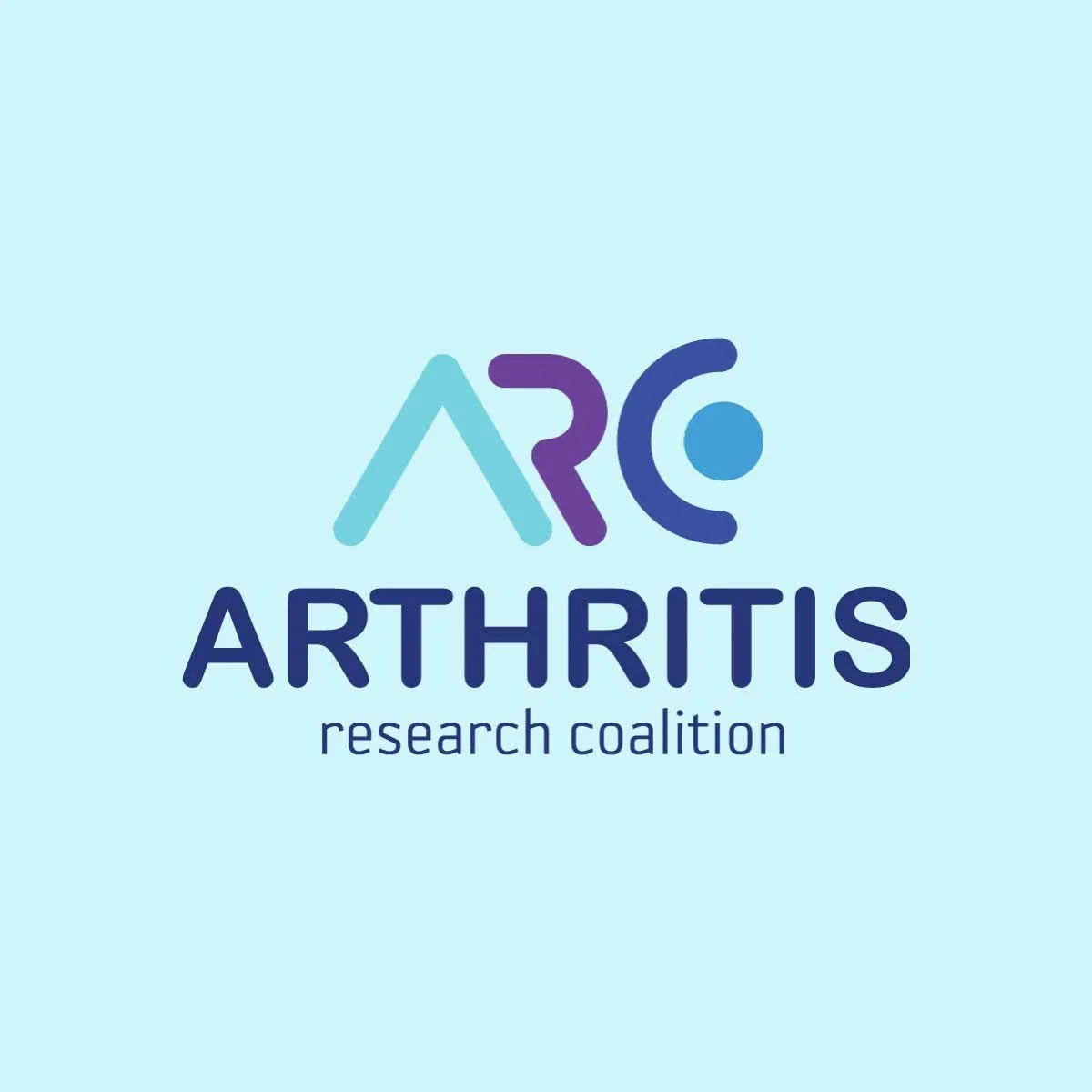 The ARC logo is built around a modern, flowing typographic mark that highlights both innovation and collaboration. The stylized “A,” “R,” and “C” interconnect to form a continuous shape, symbolizing unity within the research community and the coalition’s mission to move forward together. Rounded forms and soft edges convey approachability and care, while the dot element introduces a sense of human presence, representing the individuals whose lives are impacted by arthritis. The gradient blue and purple color palette reinforces trust, health, and progress, making the logo both professional and compassionate.